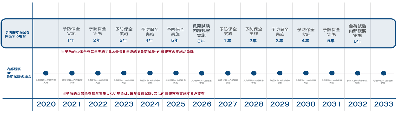 (負荷運転、内部監察、予防的な保全策)